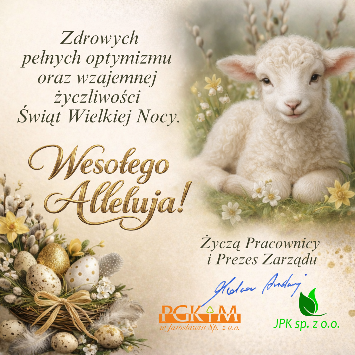 Z okazji zbliżających się Świąt Wielkiej Nocy składamy Wam najserdeczniejsze życzenia. Niech ten wyjątkowy czas przyniesie spokój, radość oraz chwile spędzone w gronie najbliższych.
