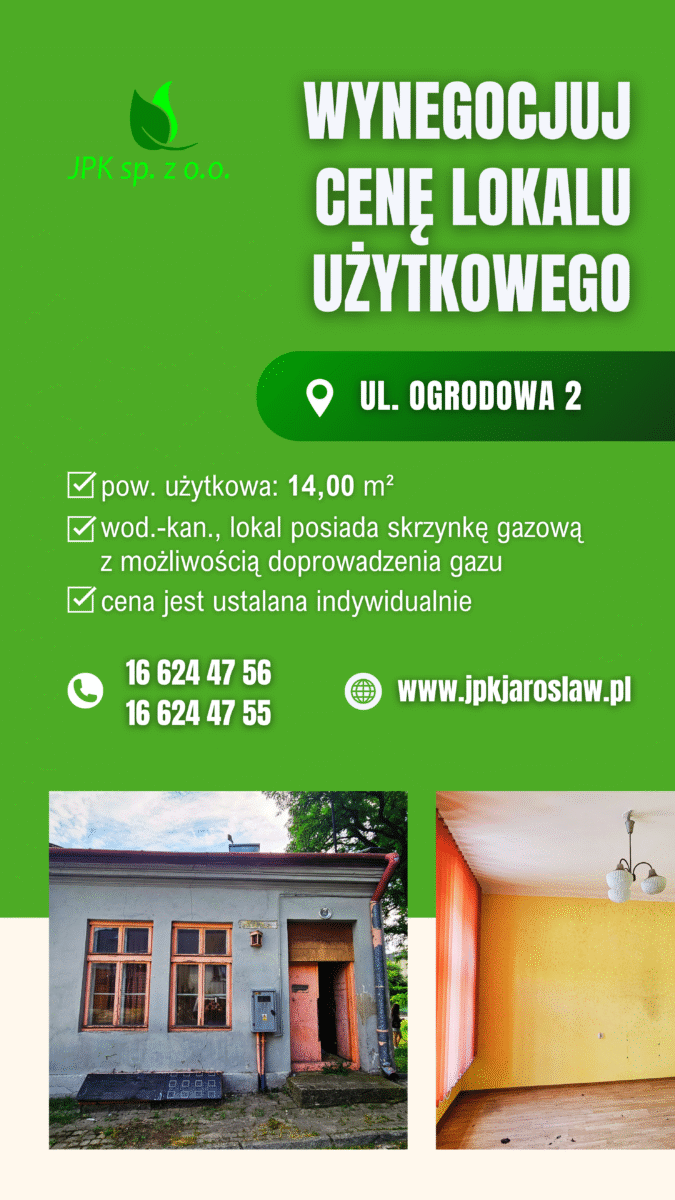 Jarosławskie Przedsiębiorstwo Komunalne Sp. z o.o. informuje o dostępnych lokalach użytkowych przeznaczonych do wynajęcia na terenie miasta Jarosławia.